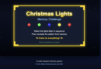 What christmas lights flash in sequence before recreating the light pattern yourself! Progress through the levels with an additional bulb being added for each level. How far can you go?